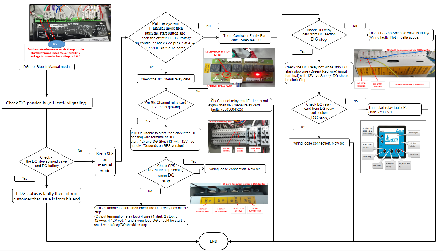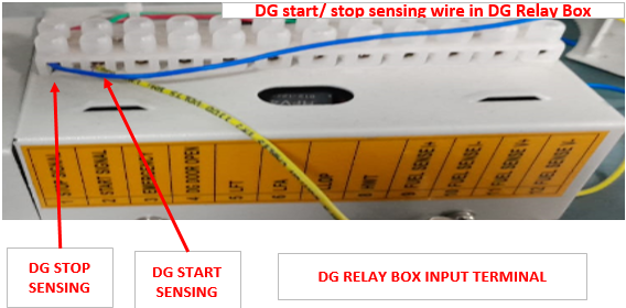 If found Yes, then Check the DG Relay box white strip DG start/ stop wire (Green/ Red