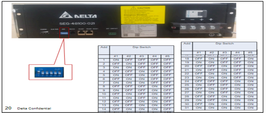 Verify the address switch settings as per the binary system shown in the image