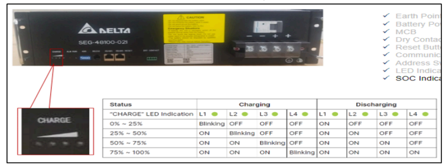SOC indication available in Li-ion systemIf yes, Fault cleared after rectification of loose connection, controller parameter setting, and necessary corrective actions.